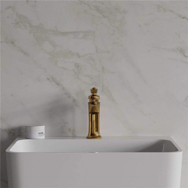 Le Mitigeur de lavabo haut (32 cm) est conçu pour les vasques à poser de grande hauteur. Ses proportions généreuses, avec une hauteur sous bec de 24 cm et une portée de 17 cm, offrent un confort d’utilisation optimal et une grande liberté de mouvement.