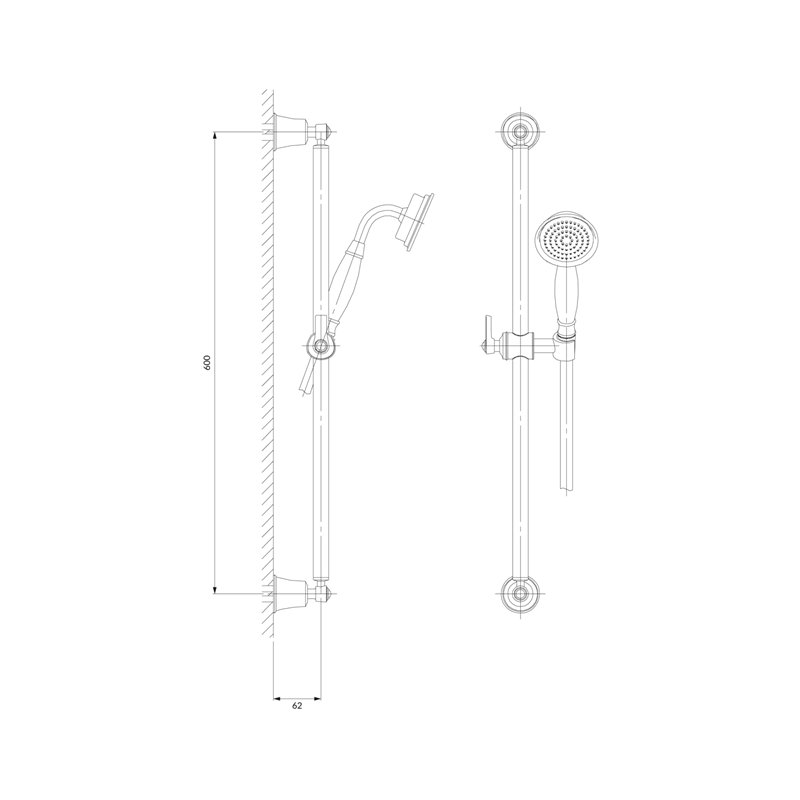 Il se compose d’un pommeau de douche en laiton à 1 fonction, d’une barre de douche de 64 cm (espacement des fixations : 60 cm) et d’un flexible de 150 cm assurant une grande liberté de mouvement.