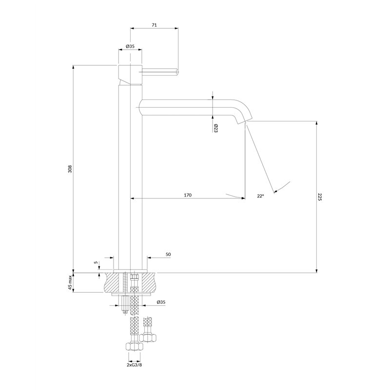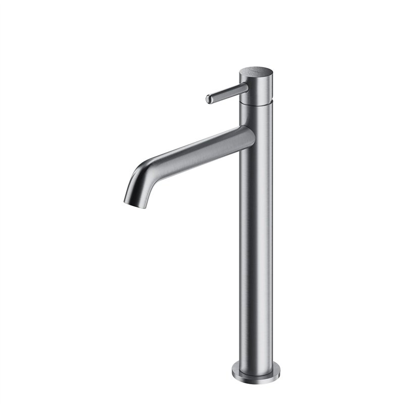Le Mitigeur de lavabo haut (32 cm) est conçu pour les vasques à poser de grande hauteur. Ses proportions généreuses, avec une hauteur sous bec de 24 cm et une portée de 17 cm, offrent un confort d’utilisation optimal et une grande liberté de mouvement.