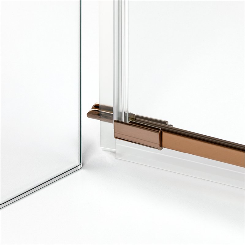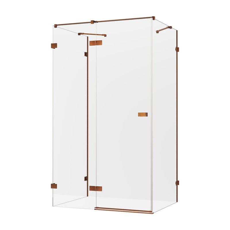 La paroi de douche AVEXA avec porte simple est conçue pour allier simplicité, fonctionnalité et design élégant. Son accueil doré brillant et ses détails chromés apportent une touche de luxe à votre salle de bain.