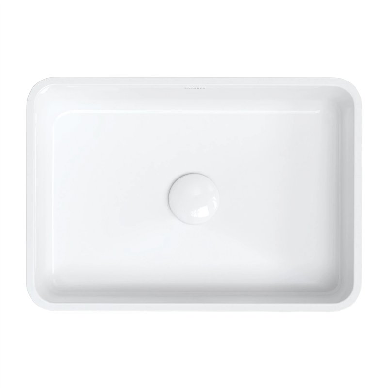 Vasque à poser au design contemporain en matériau composite M+. Sa conception avec arrière coupé facilite l’installation contre le mur, tout en offrant une excellente résistance et un entretien simple.