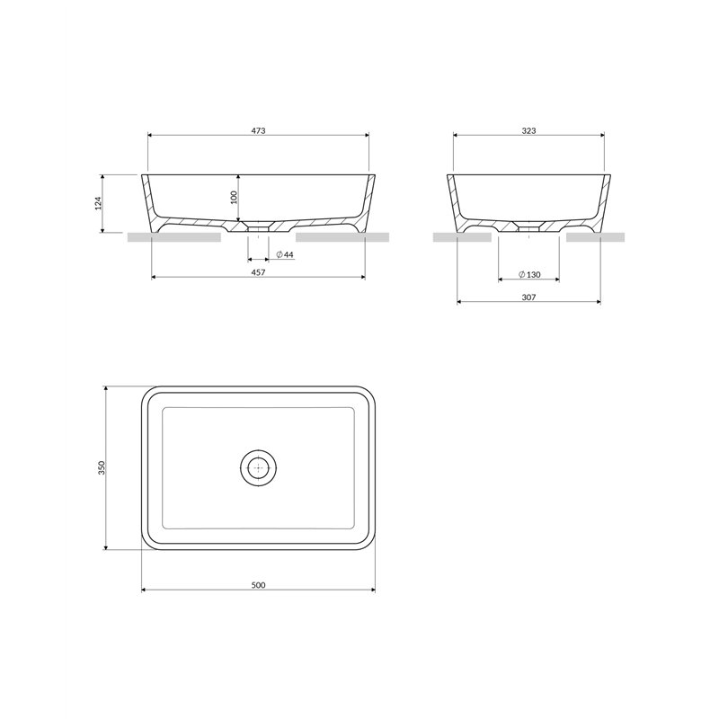 Avec ses dimensions de 55 x 43 cm et une hauteur de 85 cm, cette vasque s’intègre harmonieusement dans différents espaces tout en assurant un confort d’utilisation optimal. Équipée d’un trou pour robinetterie et dépourvue de trop-plein, elle répond aux exigences des projets contemporains.