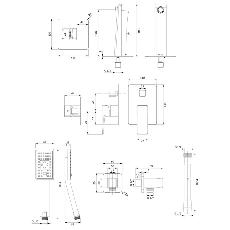 Ce système associe un Mitigeur encastré, un bec mural avec une portée de 17 cm pour un remplissage fluide de la baignoire, ainsi qu’une douchette à main 3 fonctions (pluie, massage, mixte) pour une utilisation polyvalente.