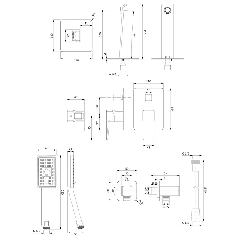 Ce système associe un Mitigeur encastré, un bec mural avec une portée de 17 cm pour un remplissage fluide de la baignoire, ainsi qu’une douchette à main 3 fonctions (pluie, massage, mixte) pour une utilisation polyvalente.