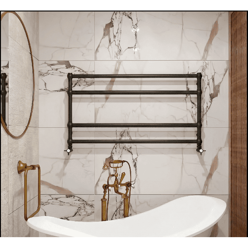 Radiateur eau chaude au design rétro horizontal avec éléments décoratifs, idéal pour les espaces recherchant une solution esthétique et performante. Sa conception assure une diffusion homogène de la chaleur tout en apportant une signature visuelle unique.