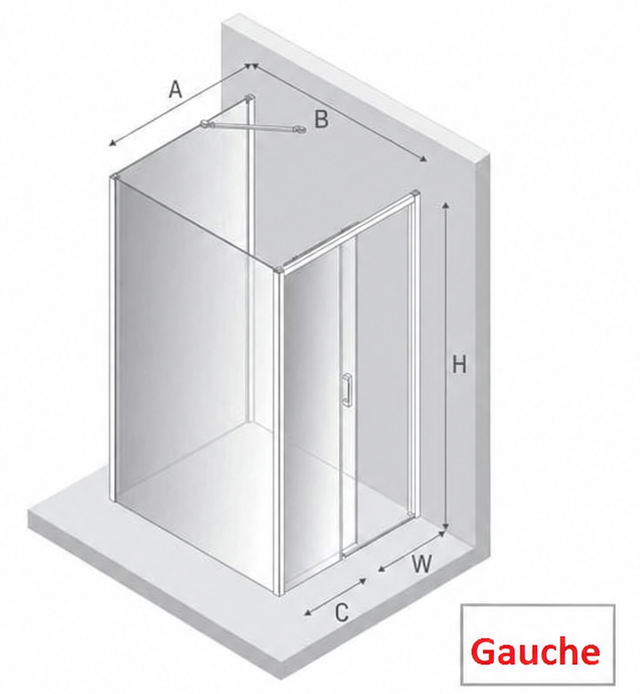 Gauche 110x90x200 Transparent 6 mm 108,5-110 88-90 49 45 200 107,5-109 86-88