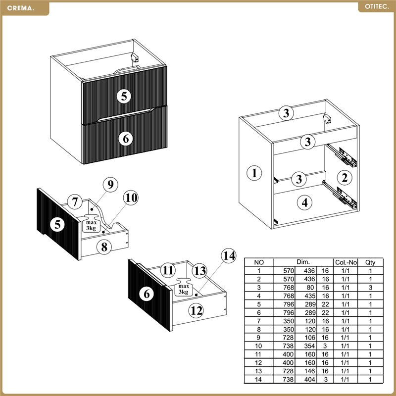 • Garantie 2 ans : Tous les meubles de la collection CREMA sont garantis 2 ans pour une salle de bain fiable, pratique et durable.