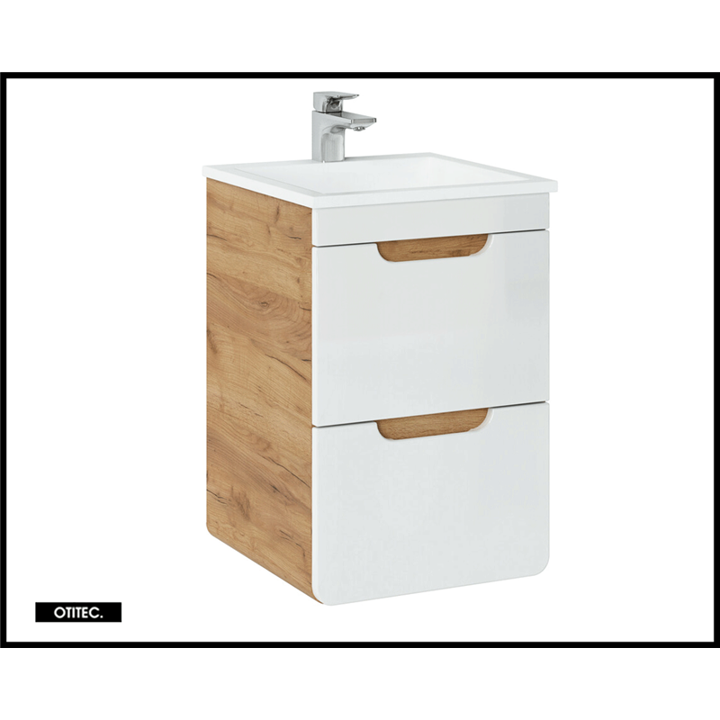 Le meuble sous vasque SEA de 60 cm avec 2 tiroirs offre un rangement optimisé et pratique au quotidien. Sa structure en MDF et panneaux stratifiés assure solidité et résistance à l’humidité. Équipé d’un système de fermeture douce, il allie confort d’utilisation et design élégant pour une salle de bain moderne.