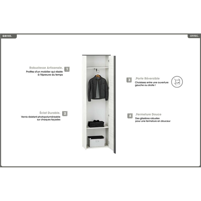• 1x - Garde robe - H.198 x L.54 x P.34 cm - GRIVO