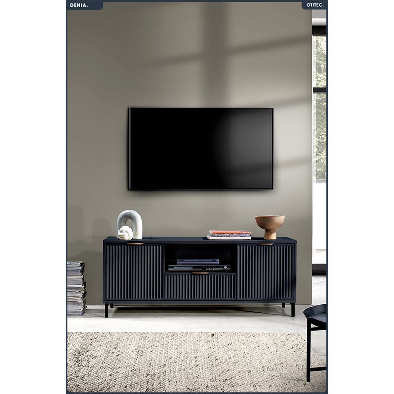 • 1x - Meuble TV - L.135 x H.56 x P.40 cm - Indigo - DENIA