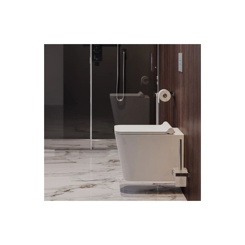 La cuvette de WC sans bride OMNIRES BOSTON se caractérise par sa silhouette distinctive et moderne. La forme géométrique de la cuvette inspirée de la forme cubique aux bords subtilement arrondis crée une combinaison saisissante avec un abattant frein de chute et profilé.