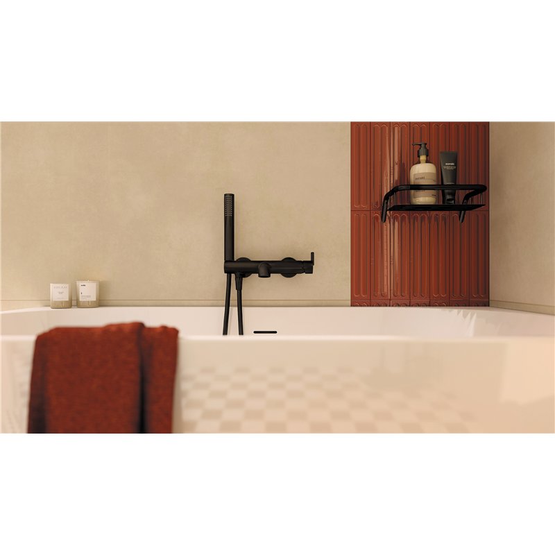 Mitigeur de bain SILIA avec ensemble de douche, pratique et complet avec support intégré et flexible anti-torsion.
