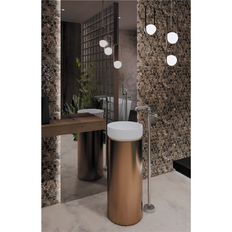 Le Mitigeur de lavabo haut (32 cm) est conçu pour les vasques à poser de grande hauteur. Ses proportions généreuses, avec une hauteur sous bec de 24 cm et une portée de 17 cm, offrent un confort d’utilisation optimal et une grande liberté de mouvement.