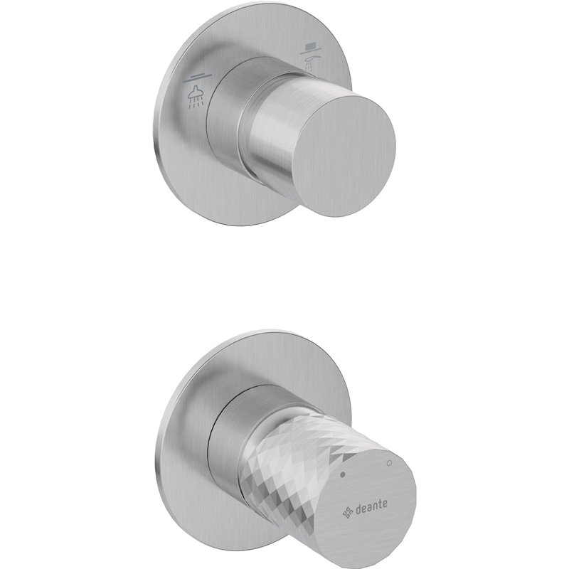 Disponible en finitions acier inoxydable brossé et or brossé, le Mitigeur de douche encastré SILIA HEXA avec inverseur combine design minimaliste et fonctionnalité avancée.