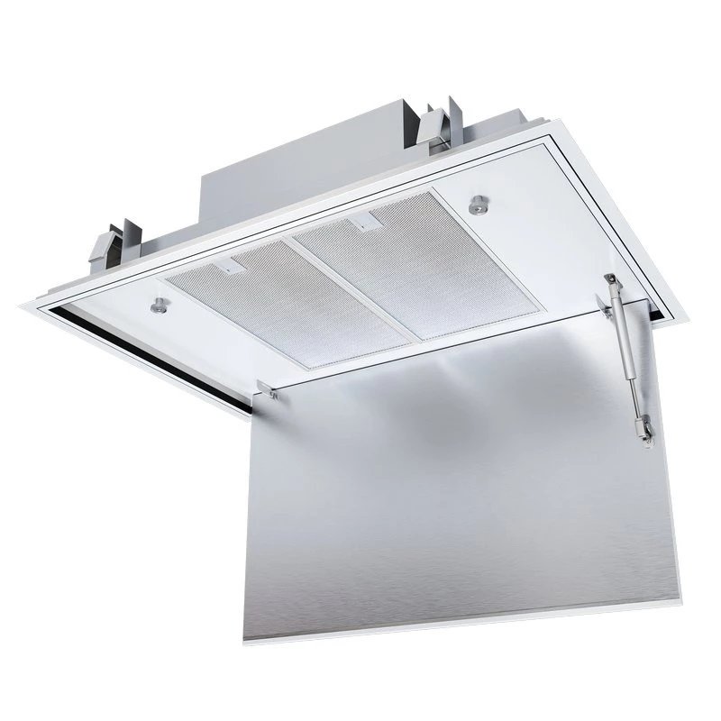 Ce modèle fonctionne en mode extraction, évacuant les vapeurs à l'extérieur du bâtiment pour maintenir un air frais et agréable. Il est équipé d'un filtre en aluminium permettant de capturer les particules graisseuses, ce qui facilite le nettoyage et évite l'encrassement de la cuisine.