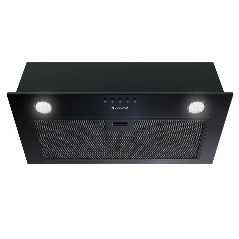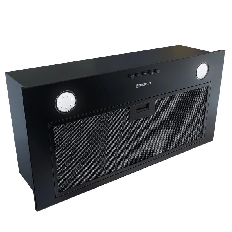 Hotte encastrable Globalo Ereniso 60.1 Black, avec une puissance jusqu’à 460 m³/h et fonctionnement silencieux dès 46 dB. Façade en verre trempé, éclairage LED et 3 vitesses pour une intégration discrète et efficace.