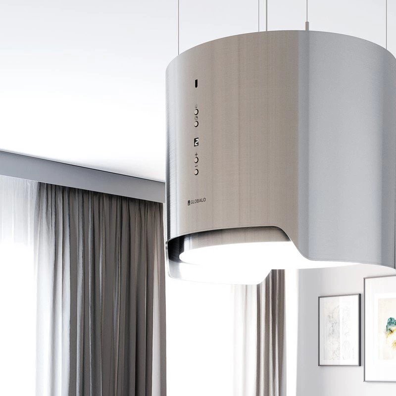 Hotte îlot cylindrique d'exception, la Heweno Isola 39.2 sublime votre cuisine avec ses finitions luxueuses (dont la version Ring avec anneau contrasté). Elle offre une aspiration puissante de 675 m³/h, un silence remarquable dès 43 dB et un éclairage LED plafonnier sophistiqué, alliant parfaitement haute technologie et esthétique minimaliste.