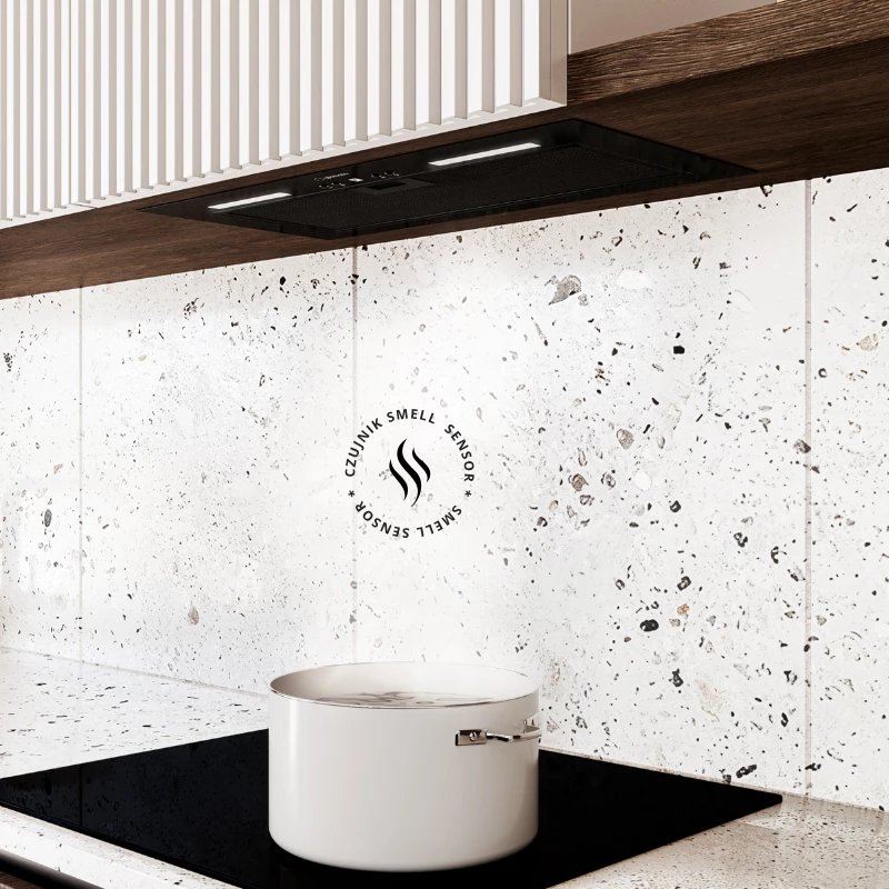 Hotte encastrable intelligente dotée d'un capteur d'odeurs automatique, offrant une aspiration performante et une discrétion totale sous vos meubles hauts. Finition premium en Noir, Blanc ou Inox, éclairage LED efficace et technologie Sensor Smell pour un air pur en toute simplicité.