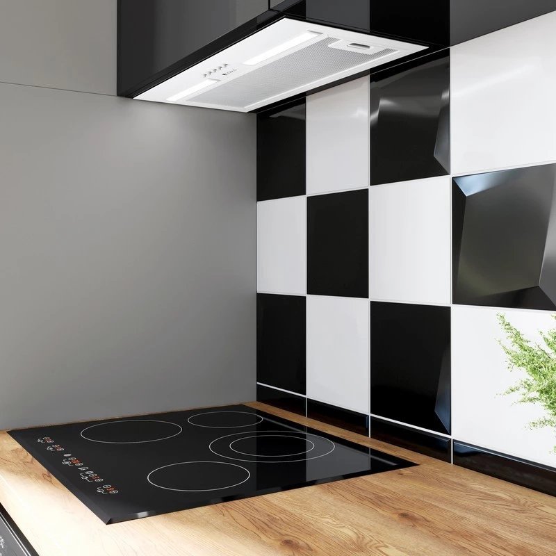 Hotte encastrable ultra-plate avec moteur déporté, offrant une cuisine silencieuse et une aspiration périmétrale performante. Design minimaliste en verre trempé Noir ou Blanc, installation invisible et éclairage LED pour un confort de cuisson inégalé.