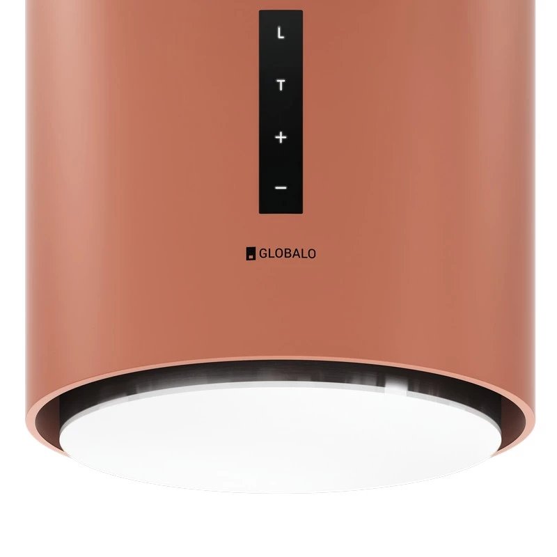 Hotte murale ronde Globalo Calmio 39.1 Carmel Gold, avec une puissance jusqu’à 570 m³/h et fonctionnement silencieux dès 47 dB. Éclairage LED, 4 vitesses et design doré élégant pour une cuisine moderne et raffinée.