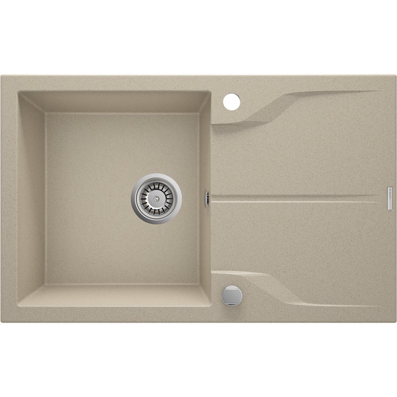 Évier en granit ANDANTE 1 cuve avec égouttoir, disponible en 2 formats, résistant à la chaleur et aux chocs, avec vidage automatique et siphon compact inclus.