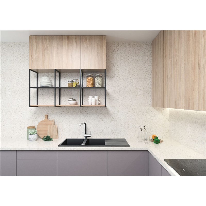 Fabriqué en composite de granit (quartz et résines), il présente une excellente résistance aux chocs, aux hautes températures (jusqu’à 250°C), aux chocs thermiques ainsi qu’à la décoloration, conformément à la norme européenne PN-EN 13310.