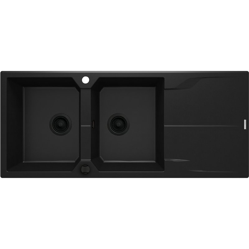 Évier en granit ANDANTE 2 cuves 1160 mm avec égouttoir, résistant à la chaleur et aux chocs, avec vidage automatique et siphon compact inclus.