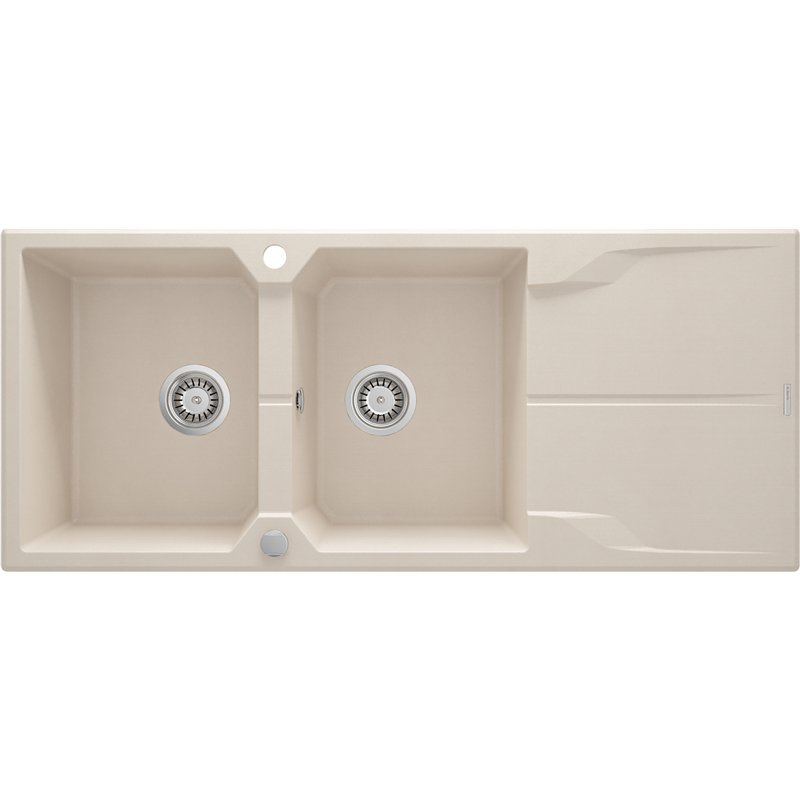 Évier en granit ANDANTE 2 cuves 1160 mm avec égouttoir, résistant à la chaleur et aux chocs, avec vidage automatique et siphon compact inclus.