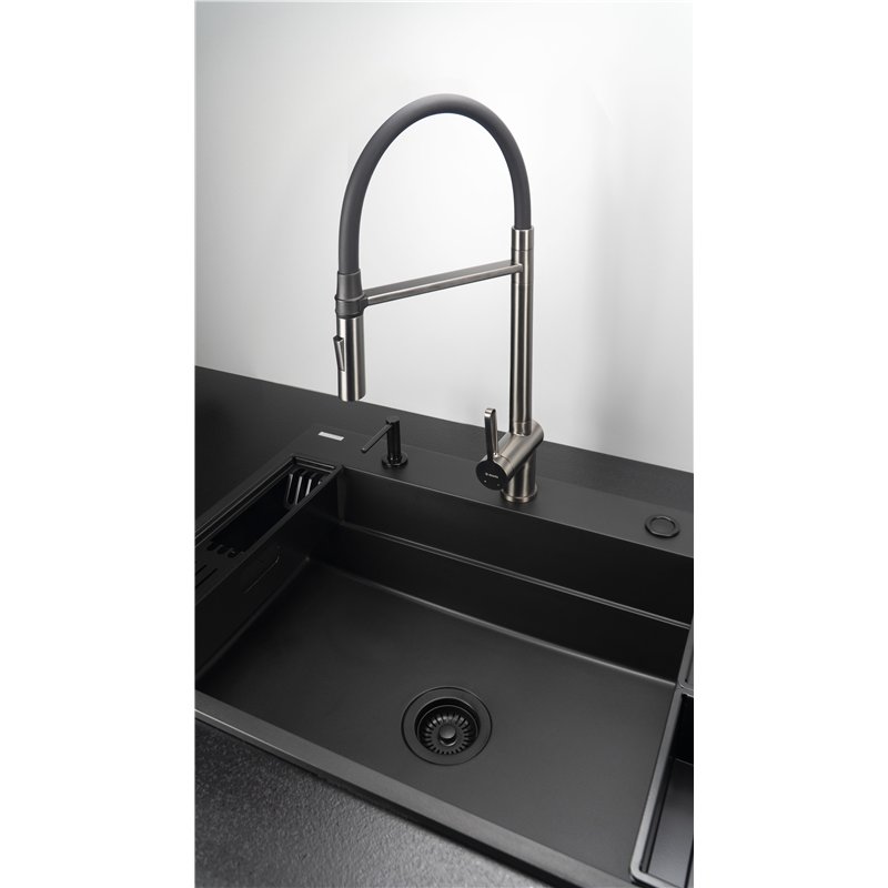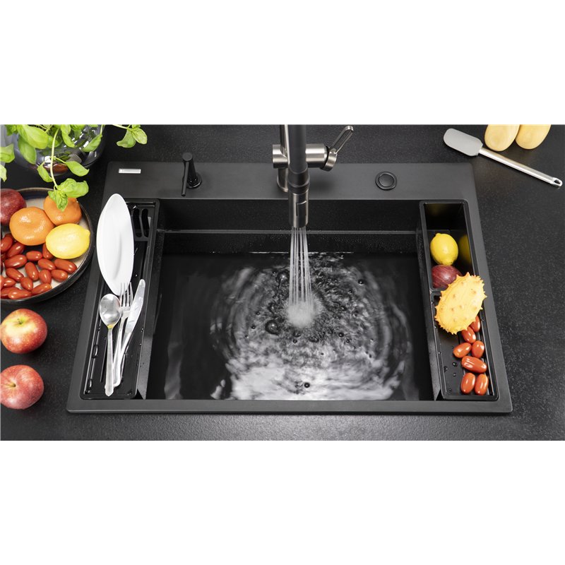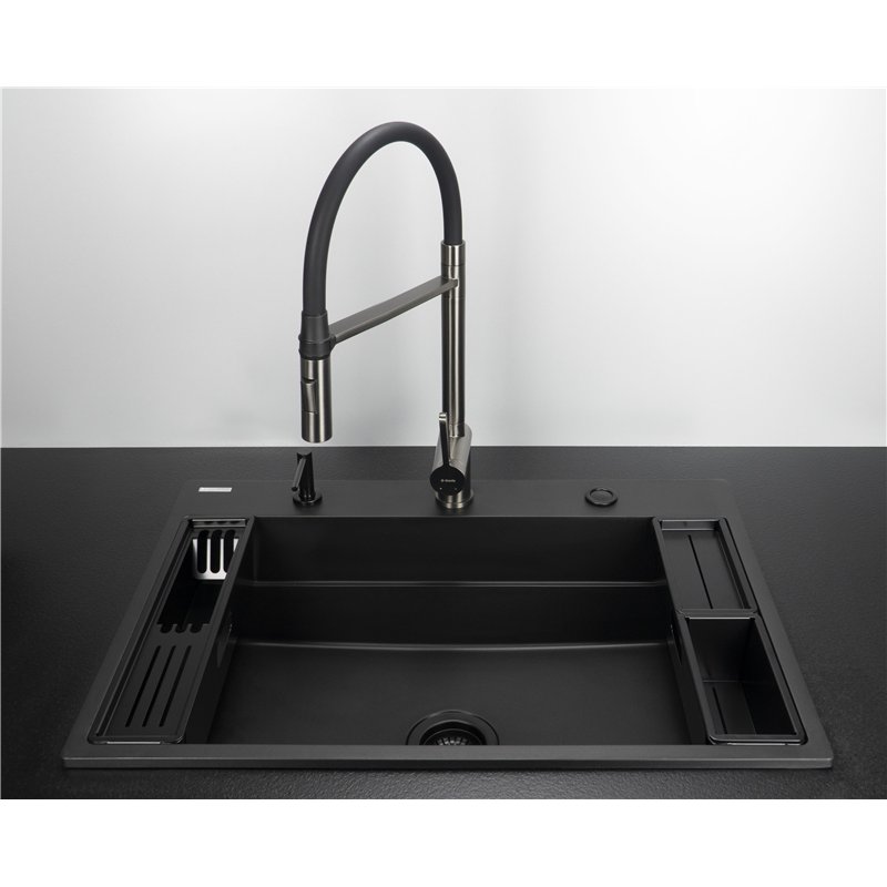 Ce modèle intègre un système magnétique invisible permettant d’ajouter différents accessoires autour de l’évier selon les besoins.