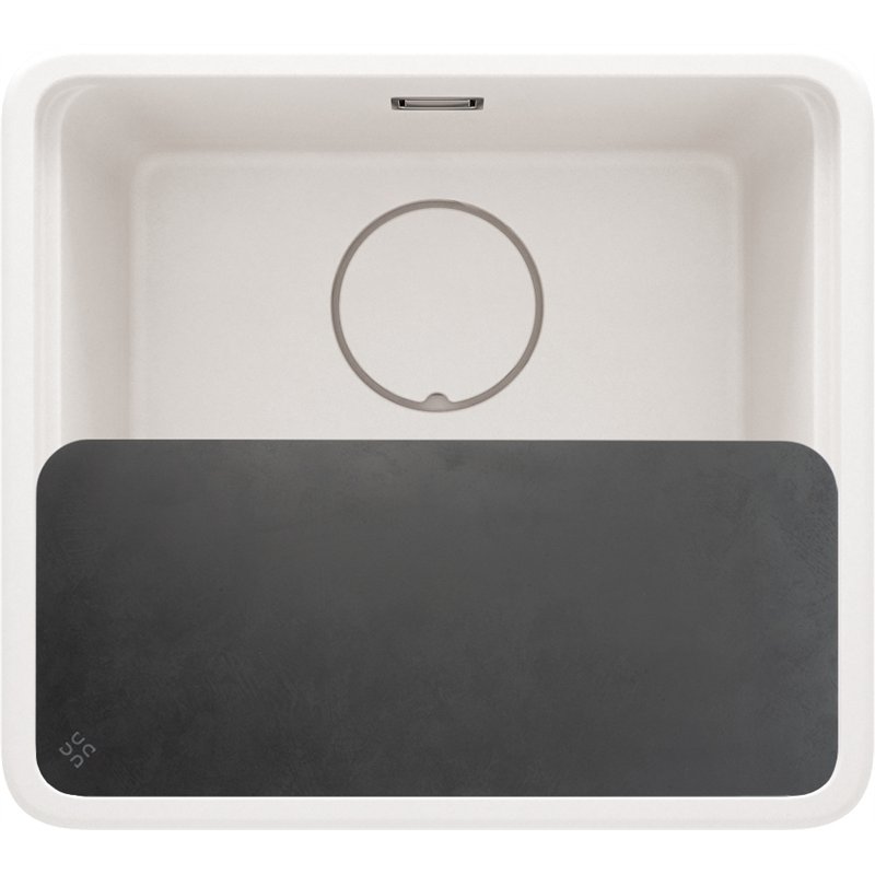 Évier en granit MOMI 1 cuve 500 x 450 mm sans égouttoir avec planche de préparation et siphon compact inclus.