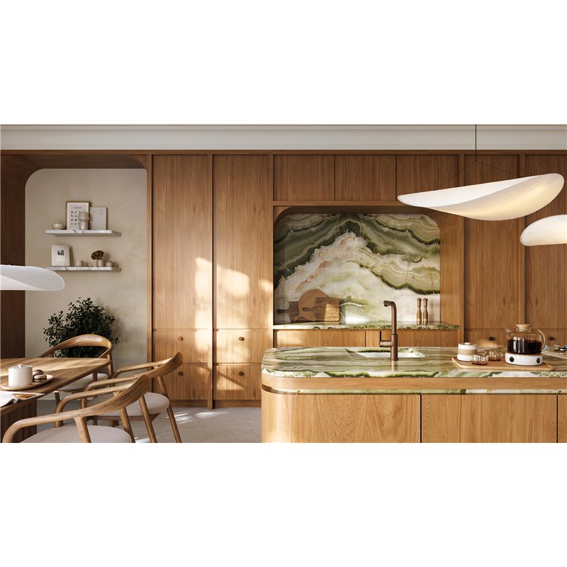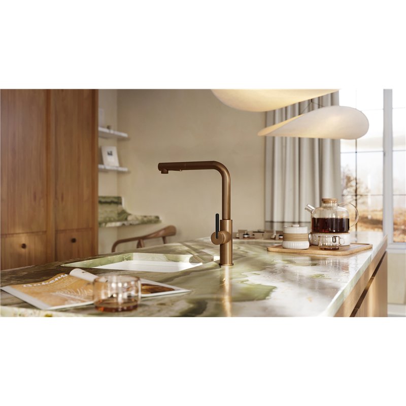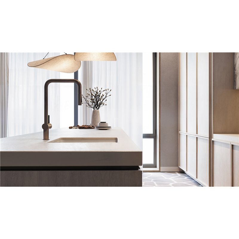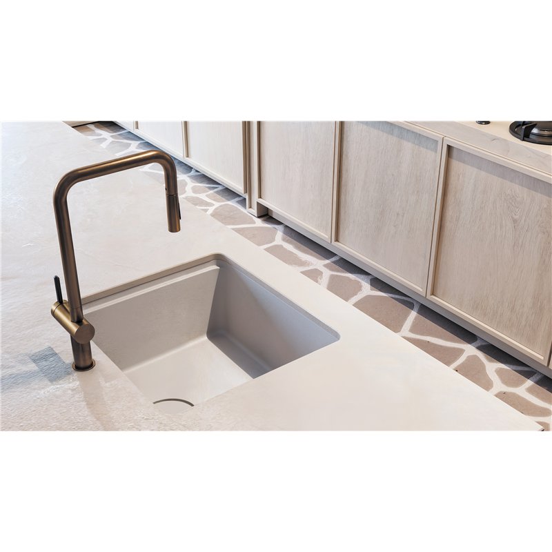 Disponible en finitions albâtre, noir, gris métallisé, anthracite métallisé et graphite métallisé, l’évier en granit MOMI se distingue par son design minimaliste et ses lignes épurées, permettant une intégration harmonieuse dans la cuisine.
