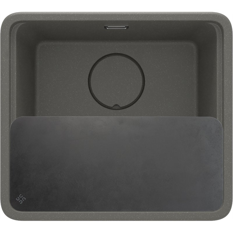 Évier en granit MOMI 1 cuve 500 x 450 mm sans égouttoir avec planche de préparation et siphon compact inclus.