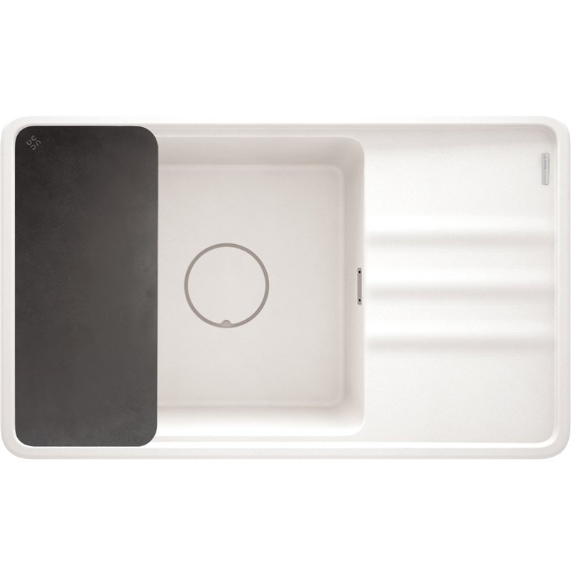 Évier en granit MOMI 1 cuve 820 x 500 mm avec égouttoir, avec planche de préparation et siphon compact inclus.