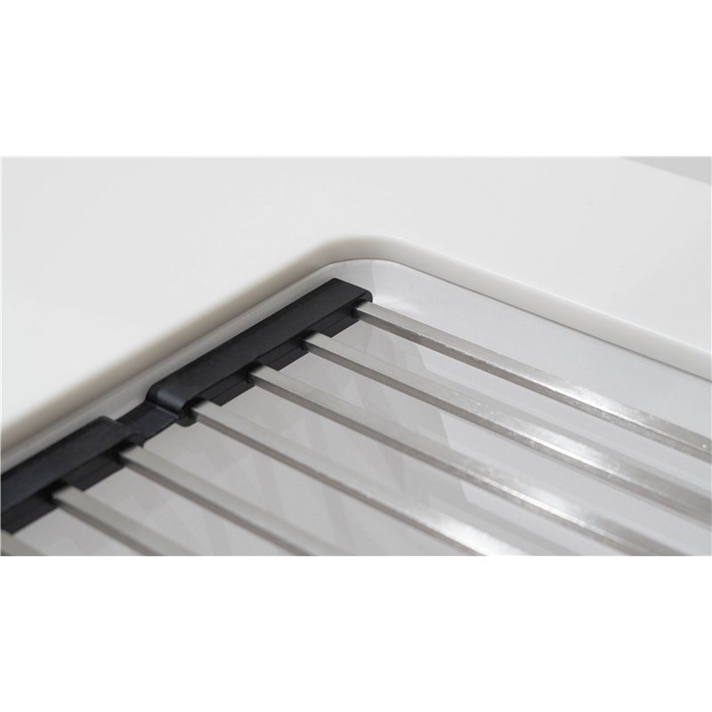 Une planche de préparation est incluse, permettant d’optimiser l’espace et d’augmenter la surface utile.