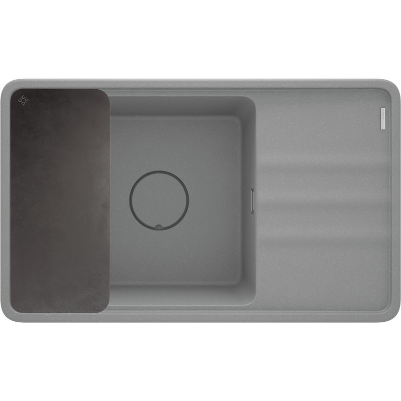 Évier en granit MOMI 1 cuve 820 x 500 mm avec égouttoir, avec planche de préparation et siphon compact inclus.