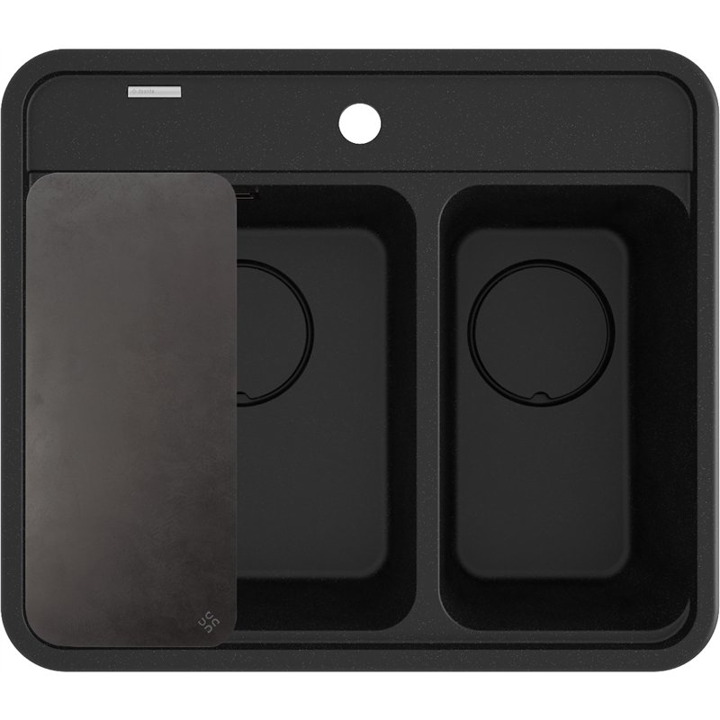 Évier en granit MOMI 1,5 cuve sans égouttoir avec planche de préparation et siphon compact inclus.