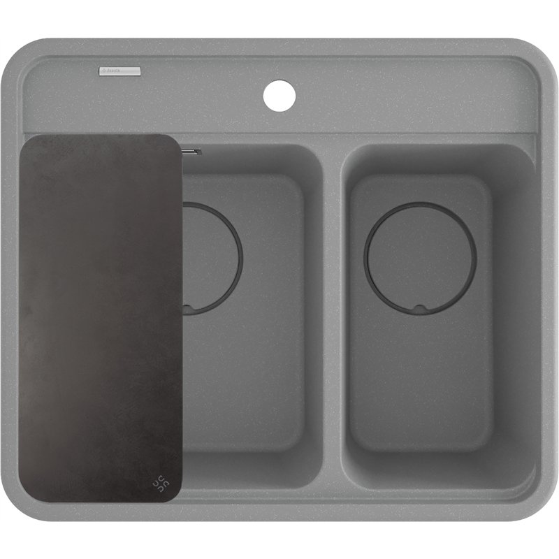 Évier en granit MOMI 1,5 cuve sans égouttoir avec planche de préparation et siphon compact inclus.