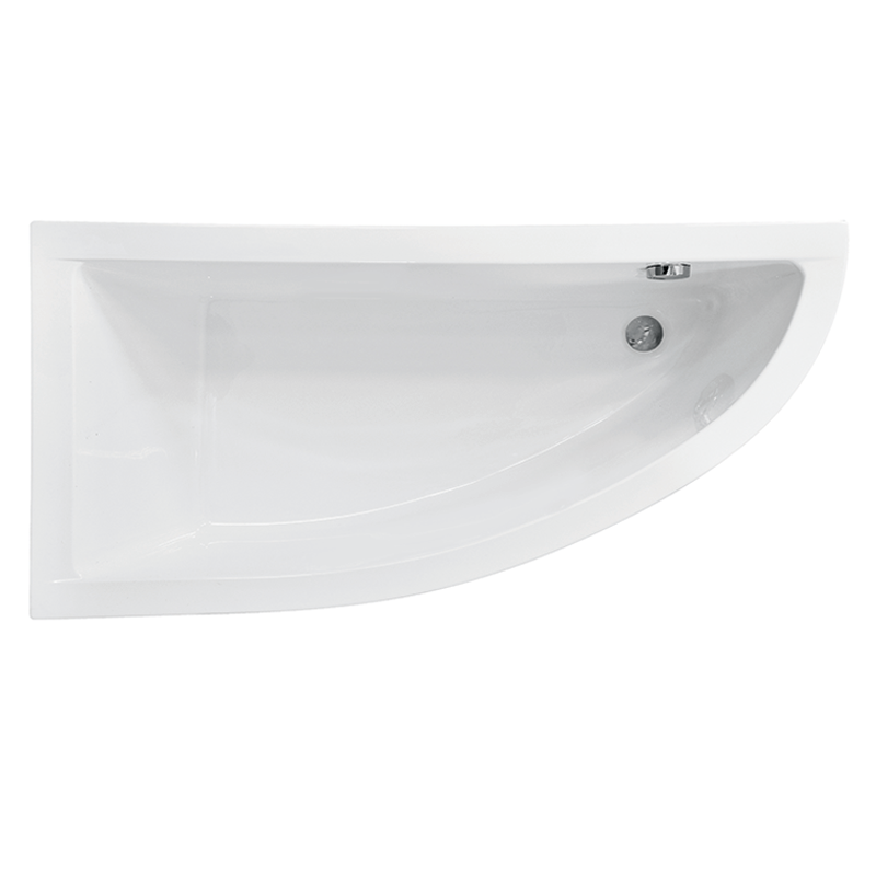Baignoire asymétrique PRAKTIKA en acrylique sanitaire renforcé, conçue pour une installation en angle. Disponible en 140 cm et 150 cm, en version gauche ou droite.