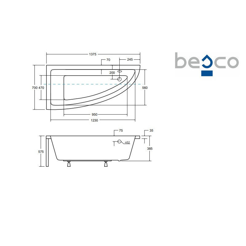 La baignoire asymétrique PRAKTIKA est conçue pour optimiser lespace dans les salles de bain tout en conservant une zone de bain confortable. Son format en angle permet de gagner de la place tout en apportant une touche moderne à laménagement de la pièce.