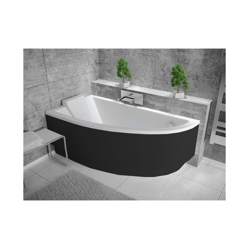 Baignoire asymétrique PRAKTIKA en acrylique sanitaire renforcé, conçue pour une installation en angle. Disponible en 140 cm et 150 cm, en version gauche ou droite.