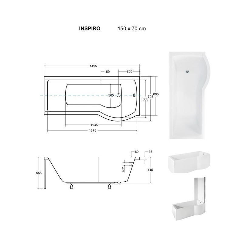 La baignoire INSPIRO est disponible en plusieurs dimensions : 150, 160 et 170 cm, ce qui lui permet de sadapter aussi bien aux salles de bain compactes quaux espaces plus généreux.