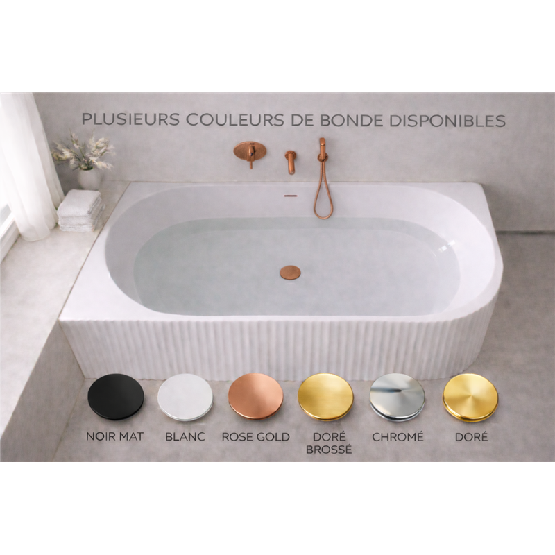 La bonde et le trop-plein sont proposés en plusieurs finitions : chrome, doré, doré brossé, cuivre, blanc et noir mat, permettant d’harmoniser l’ensemble avec votre robinetterie.