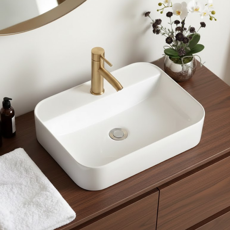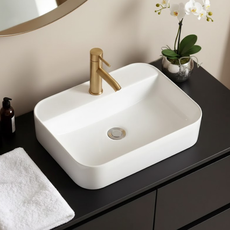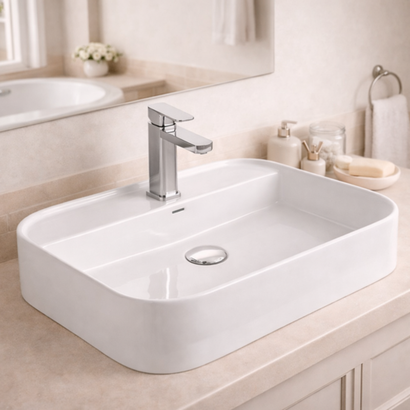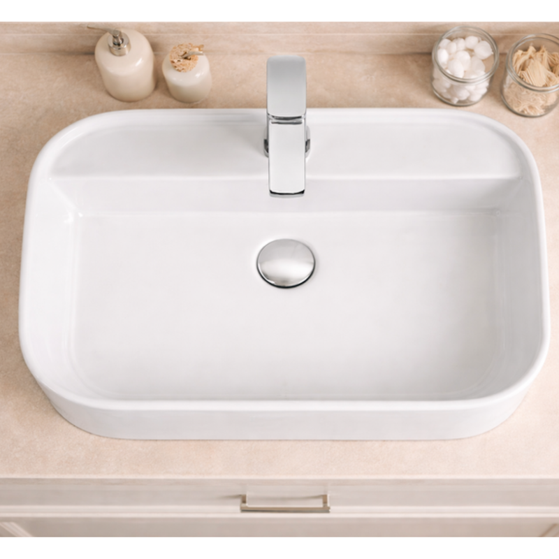 La vasque à poser KAIA se distingue par un design volontairement épuré, pensé pour s'intégrer facilement dans différents styles de salles de bain. Sa forme rectangulaire aux angles adoucis et ses lignes nettes offrent un rendu sobre et intemporel.