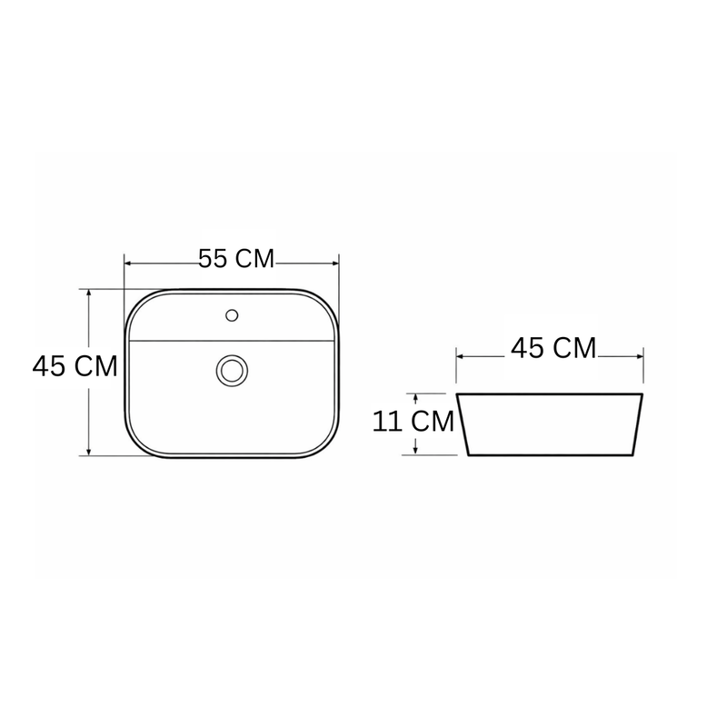 Cette vasque est disponible en dimension 55 x 45 cm ou 65 x 45 cm.