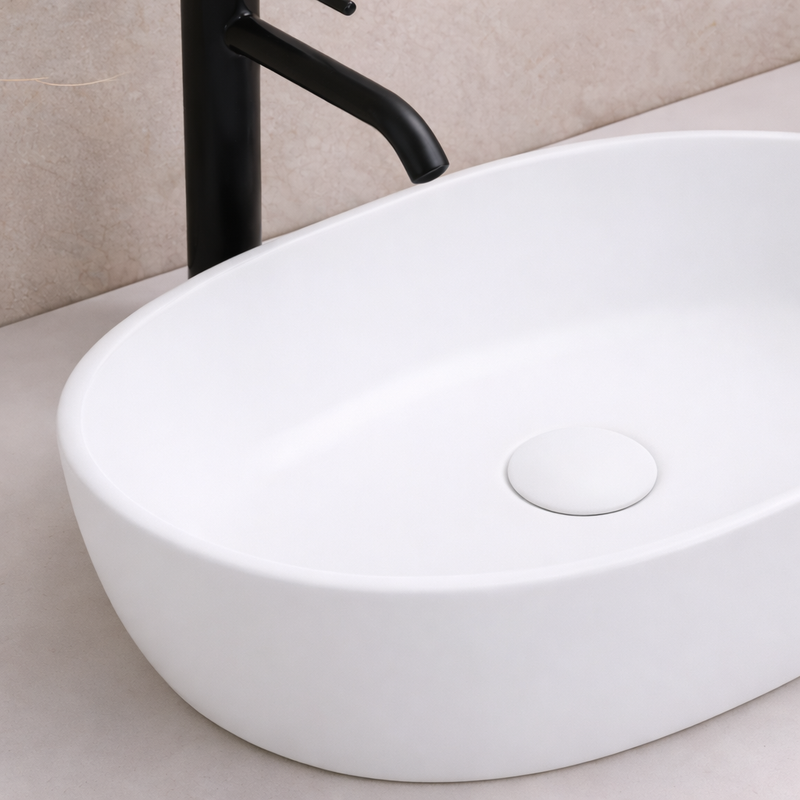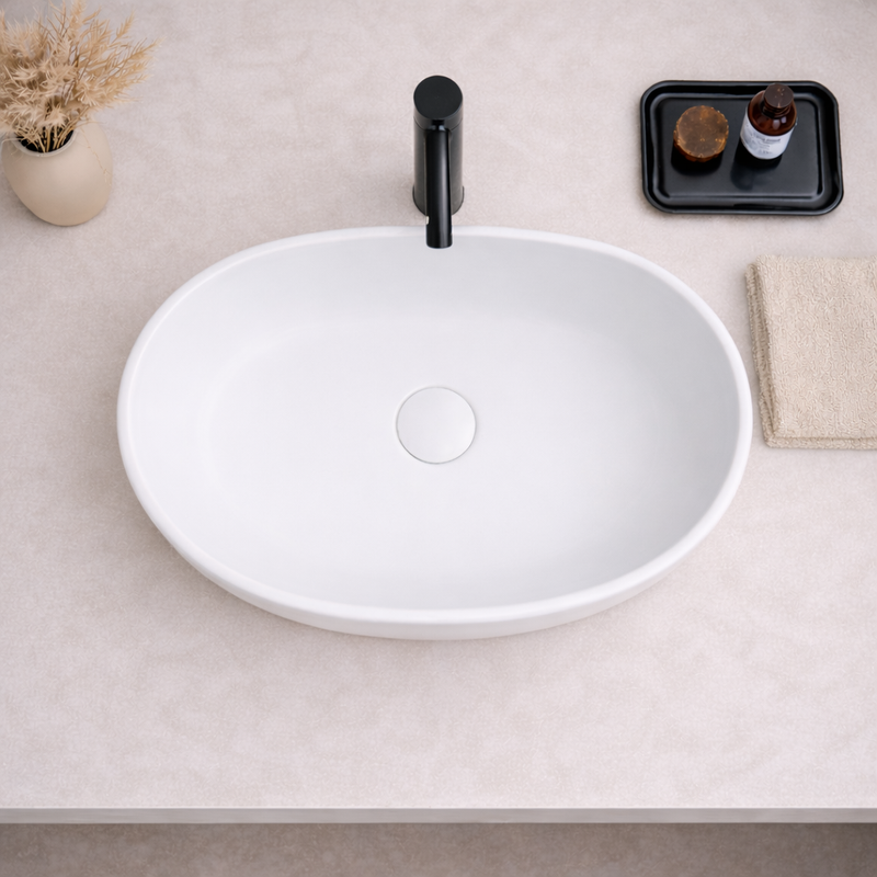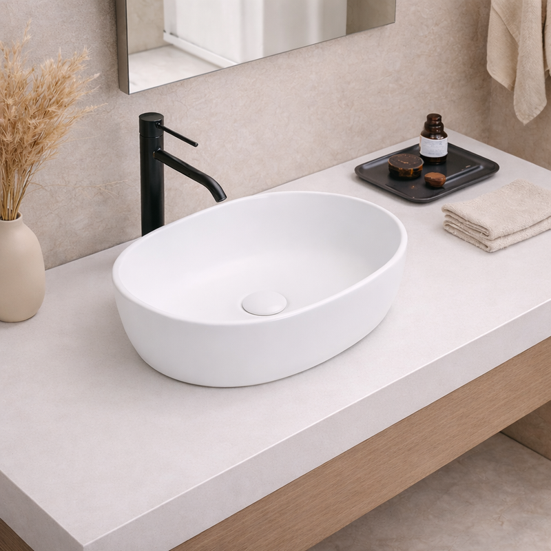 Vasque à poser arrondie -48 x 35 cm -Blanc mat -ALINA
