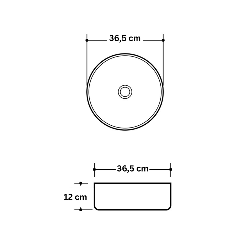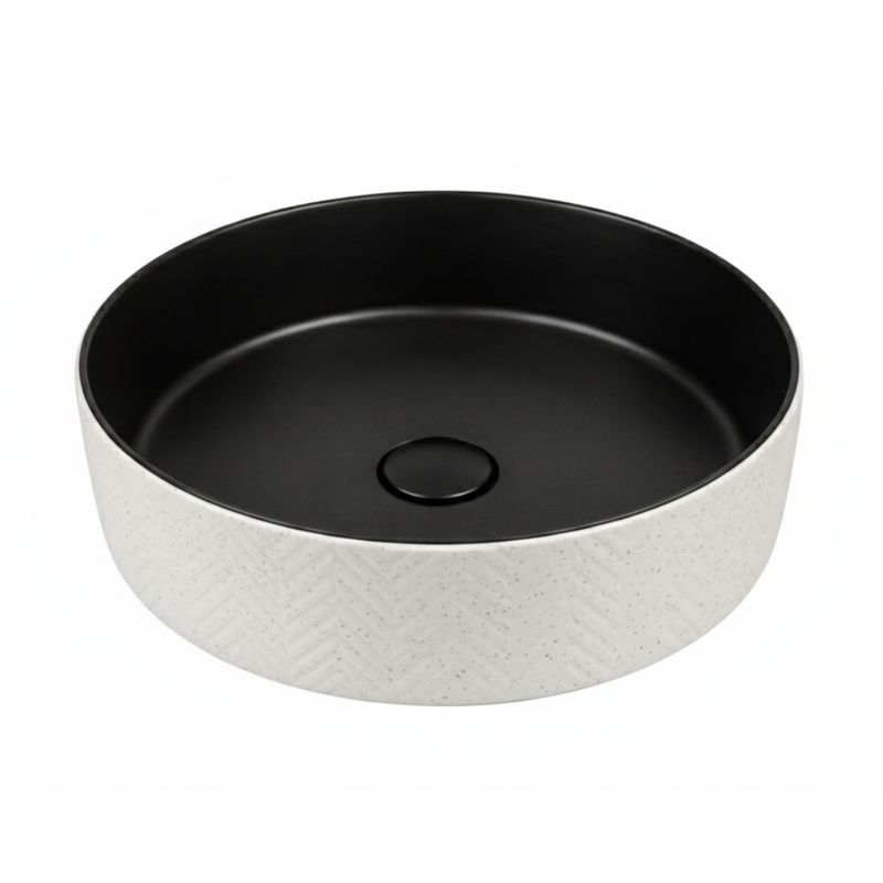 Vasque à poser ronde -Ø 36,5 cm -Interieur gris foncé / exterieur blanc effet pierre rainurée -KALEO