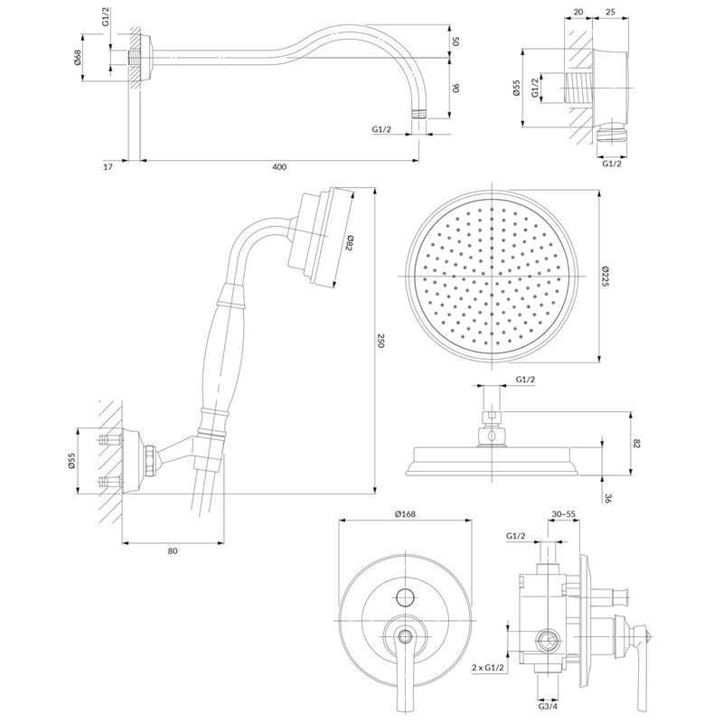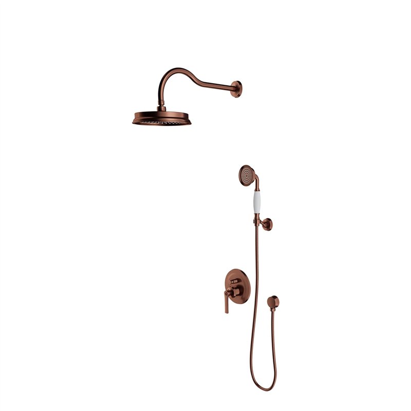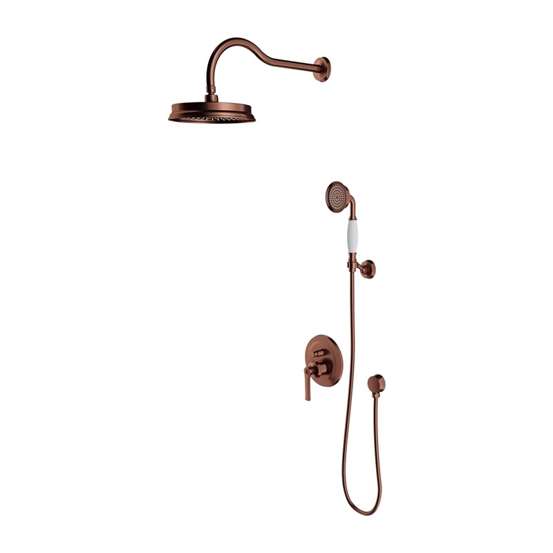 Ce système comprend un mélangeur encastré pour douche et baignoire, une tête de douche en laiton (ø22,5 cm) assurant une diffusion homogène de l’eau, un bras mural ainsi qu’un ensemble de douche à main 1 fonction pour une utilisation complémentaire.
