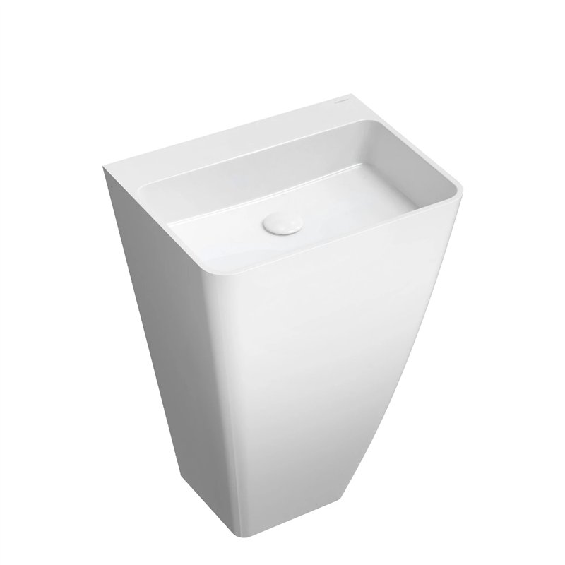 Vasque sur pied en matériau composite M+ à base de roche dolomitique, au design épuré et à la finition blanc brillant. Sa surface lisse et non poreuse facilite l’entretien tout en garantissant une excellente hygiène au quotidien.