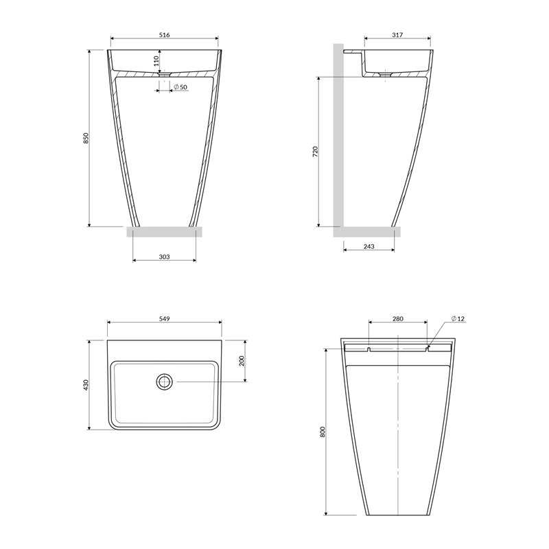 Avec ses dimensions de 55 x 43 cm et une hauteur de 85 cm, cette vasque offre un équilibre idéal entre compacité et confort d’utilisation.