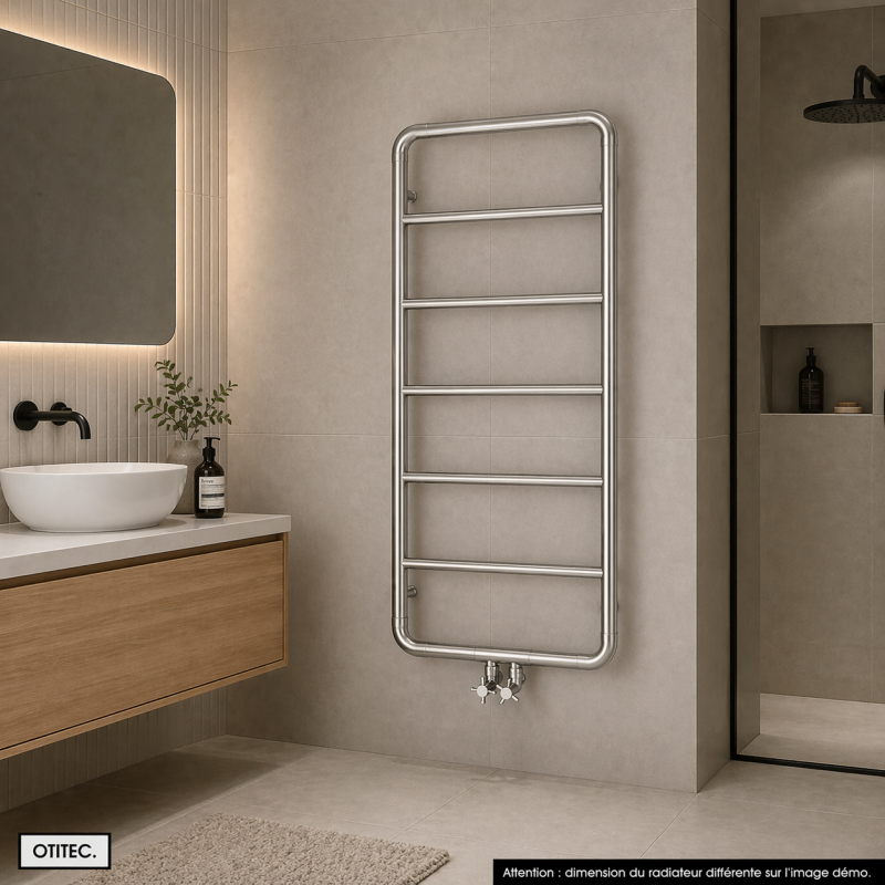 Sa conception permet une diffusion homogène de la chaleur tout en offrant une utilisation pratique en sèche-serviette. Robuste et fiable, il est conçu pour résister aux environnements humides.